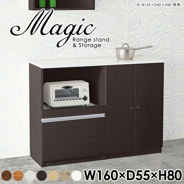 magic レンジ台×収納庫 w160×d55×h80 木目