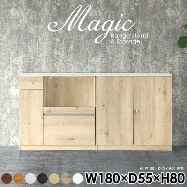 magic レンジ台×収納庫 w180×d55×h80 木目