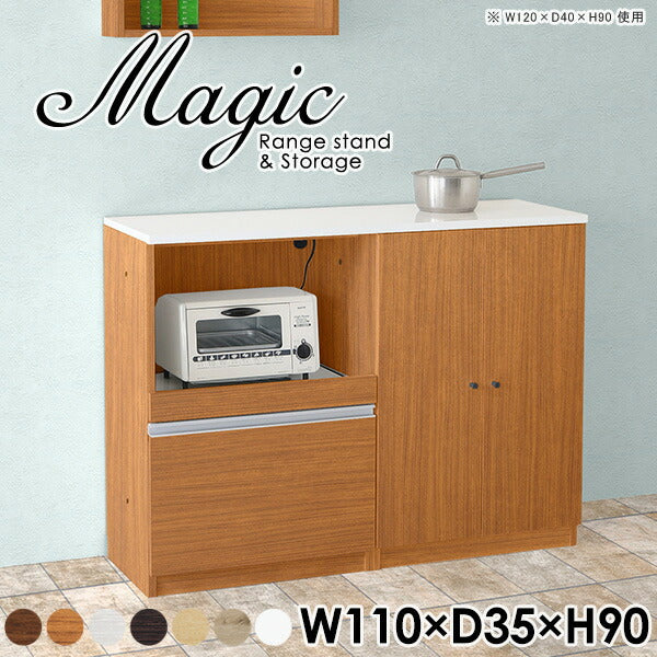magic レンジ台×収納庫 w110×d35×h90 木目