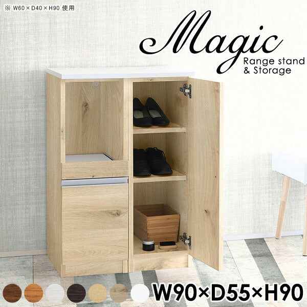 magic レンジ台×収納庫 w90×d55×h90 木目
