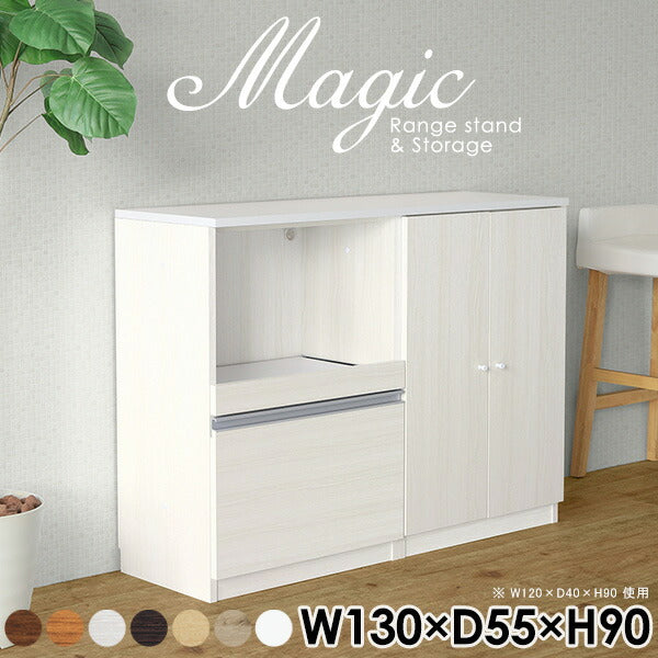 magic レンジ台×収納庫 w130×d55×h90 木目