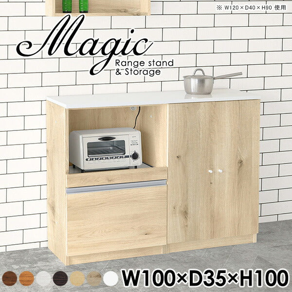 magic レンジ台×収納庫 w100×d35×h100 木目