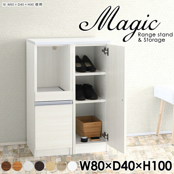 magic レンジ台×収納庫 w80×d40×h100 木目