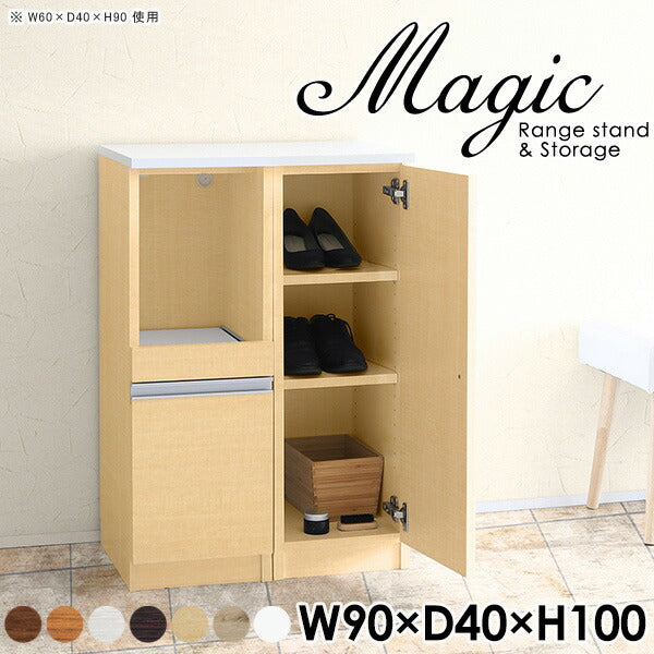 magic レンジ台×収納庫 w90×d40×h100 木目