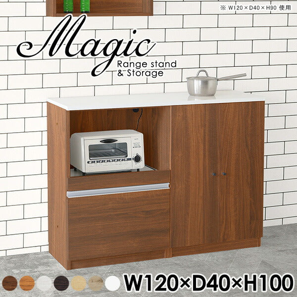 magic レンジ台×収納庫 w120×d40×h100 木目