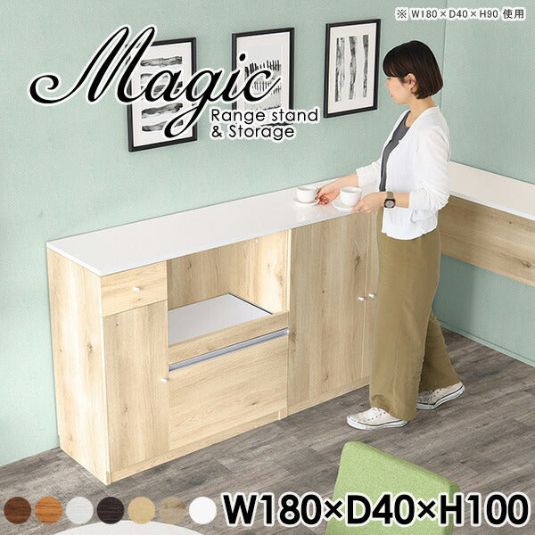 magic レンジ台×収納庫 w180×d40×h100 木目