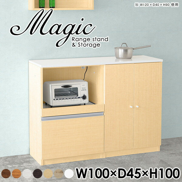 magic レンジ台×収納庫 w100×d45×h100 木目