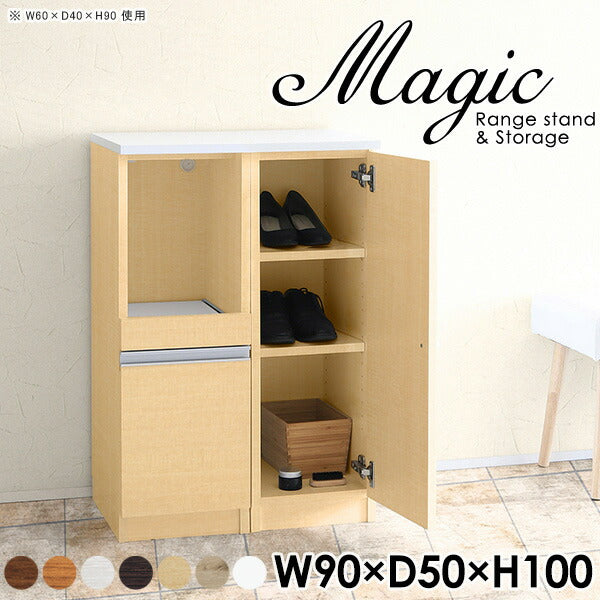 magic レンジ台×収納庫 w90×d50×h100 木目