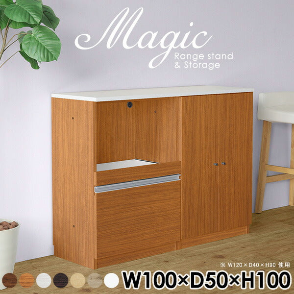 magic レンジ台×収納庫 w100×d50×h100 木目