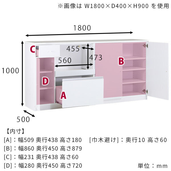 基本サイズ:約幅1800 奥行き500 高さ1000 mm |