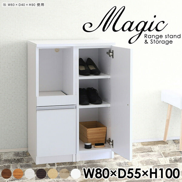 magic レンジ台×収納庫 w80×d55×h100 木目