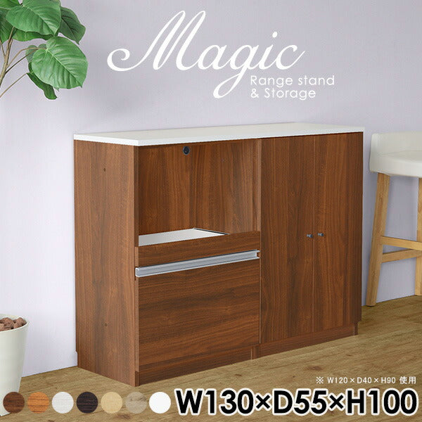 magic レンジ台×収納庫 w130×d55×h100 木目