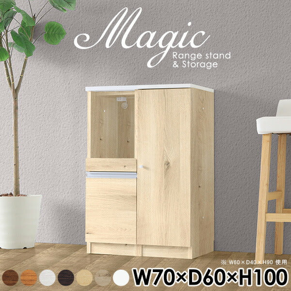 magic レンジ台×収納庫 w70×d60×h100 木目