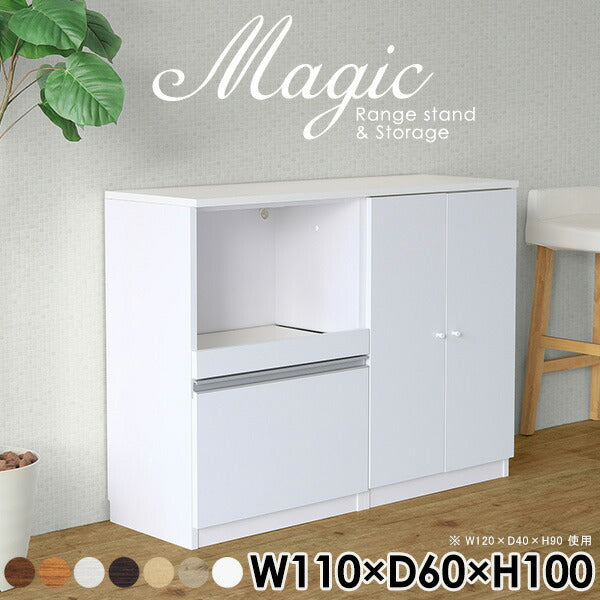 magic レンジ台×収納庫 w110×d60×h100 木目
