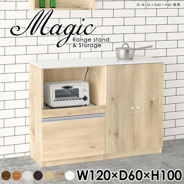 magic レンジ台×収納庫 w120×d60×h100 木目