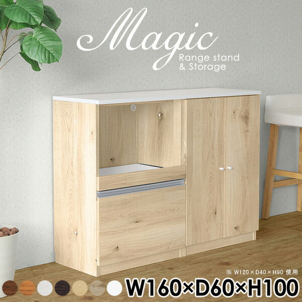 magic レンジ台×収納庫 w160×d60×h100 木目