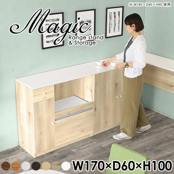 magic レンジ台×収納庫 w170×d60×h100 木目