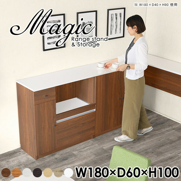 magic レンジ台×収納庫 w180×d60×h100 木目