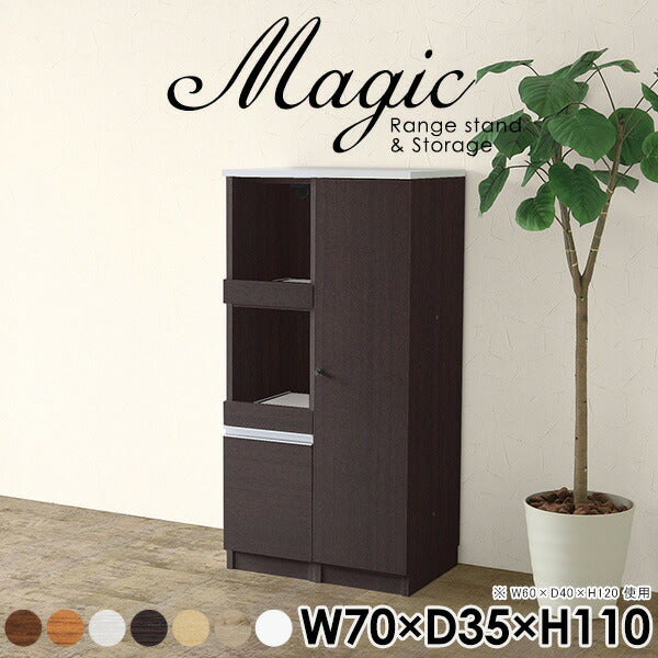 magic レンジ台×収納庫 w70×d35×h110 木目