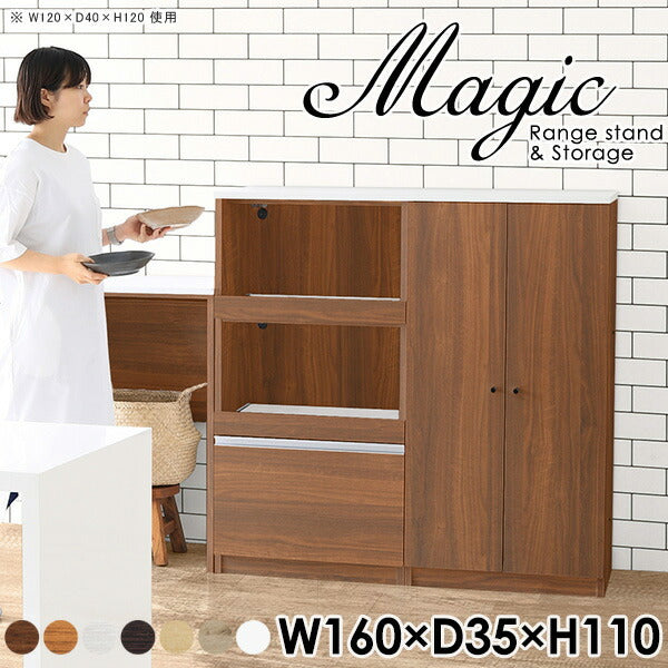 magic レンジ台×収納庫 w160×d35×h110 木目