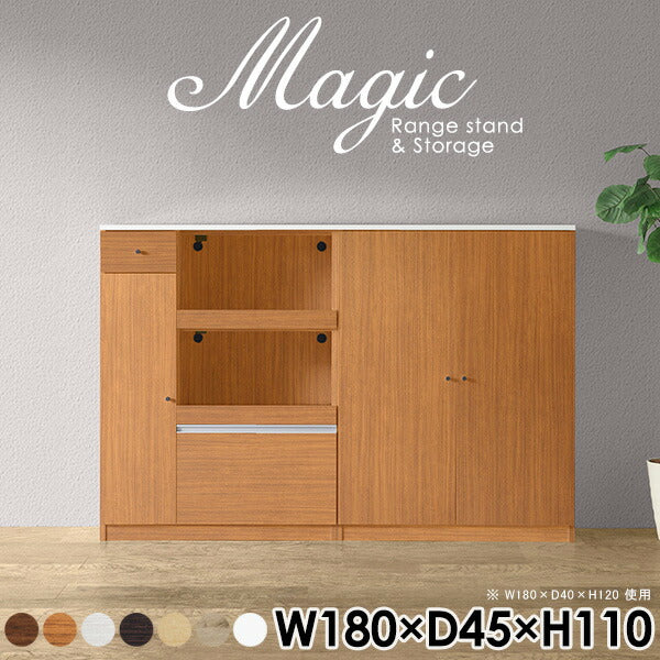 magic レンジ台×収納庫 w180×d45×h110 木目