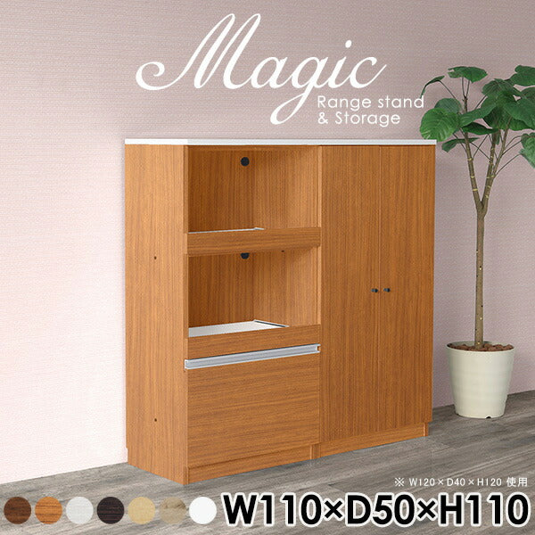 magic レンジ台×収納庫 w110×d50×h110 木目