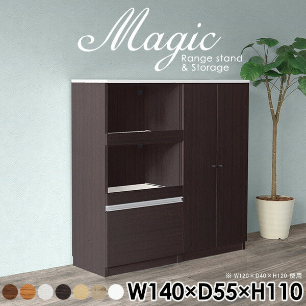 magic レンジ台×収納庫 w140×d55×h110 木目