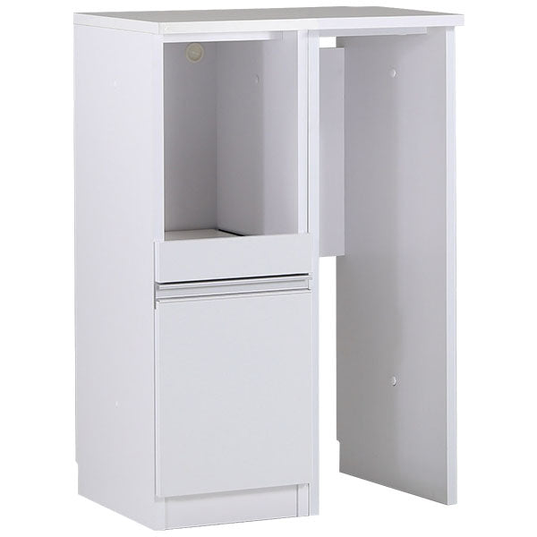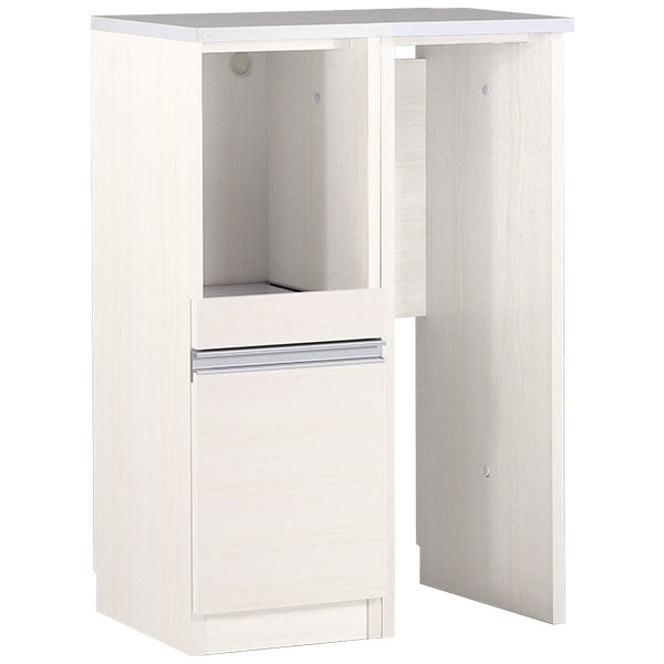 レンジ台には家電製品を置いてもスムーズに出し入れできるスライド棚がついており、1口コンセント付きです。