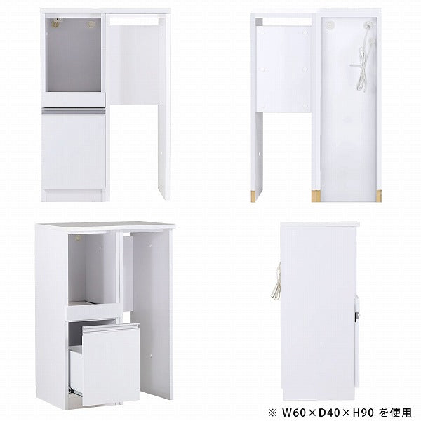 レンジ台には家電製品を置いてもスムーズに出し入れできるスライド棚がついており、1口コンセント付きです。