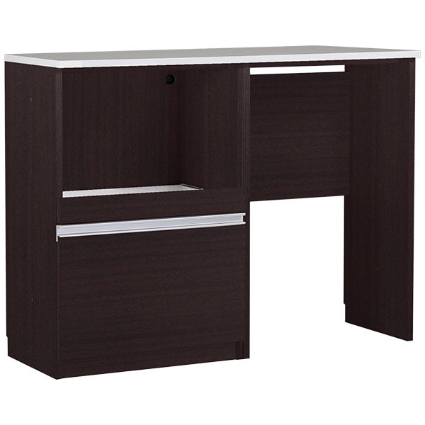 ツヤのある、高級感を感じさせるメラミン樹脂化粧合板を使用した天板。