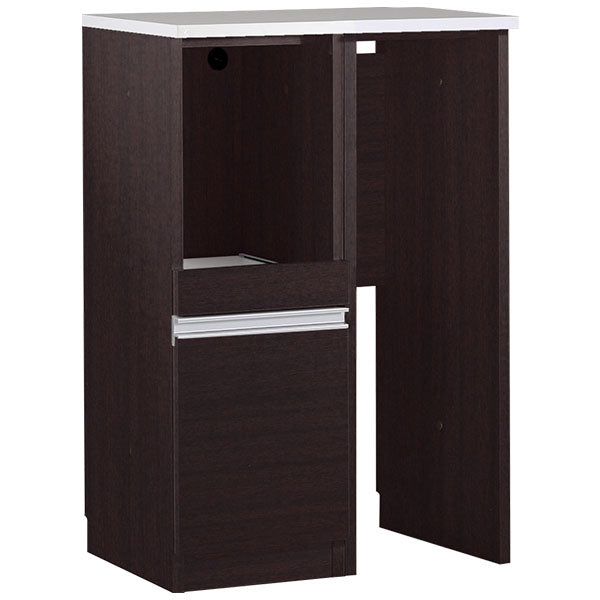 レンジ台には家電製品を置いてもスムーズに出し入れできるスライド棚がついており、1口コンセント付きです。