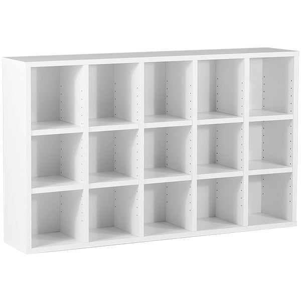 均等に美しく配置された縦板と、可動式の棚板でどんなサイズも収納可能。