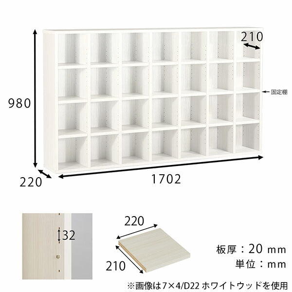 棚の横幅が22cm間隔で分割されているため、棚の強度も十分です。(棚板1枚の耐荷重約10kg)