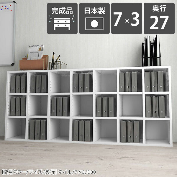 A4サイズの書類がすっきり収まる27cm、本以外の収納にも使いやすい30cmや35cmの奥行も。