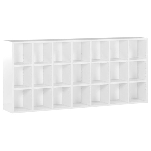 均等に美しく配置された縦板と、可動式の棚板でどんなサイズも収納可能。
