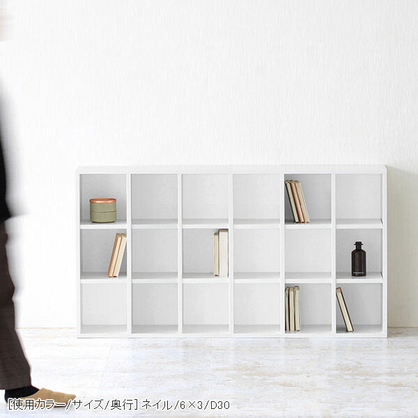 [使用カラー/サイズ/奥行] 上:ホワイトウッド(メラミン)/7×4/D30、下:北欧チーク/3×6/D30 3点