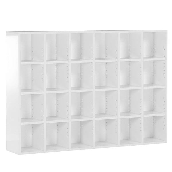 均等に美しく配置された縦板と、可動式の棚板でどんなサイズも収納可能。
