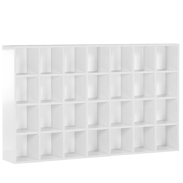 均等に美しく配置された縦板と、可動式の棚板でどんなサイズも収納可能。