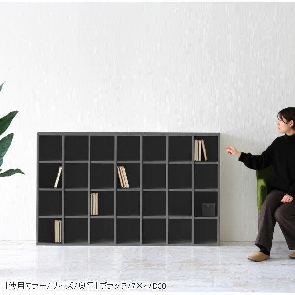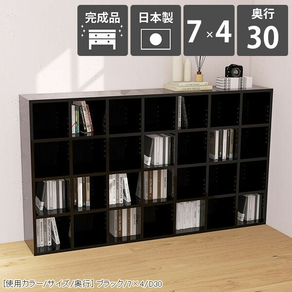 A4サイズの書類がすっきり収まる27cm、本以外の収納にも使いやすい30cmや35cmの奥行も。