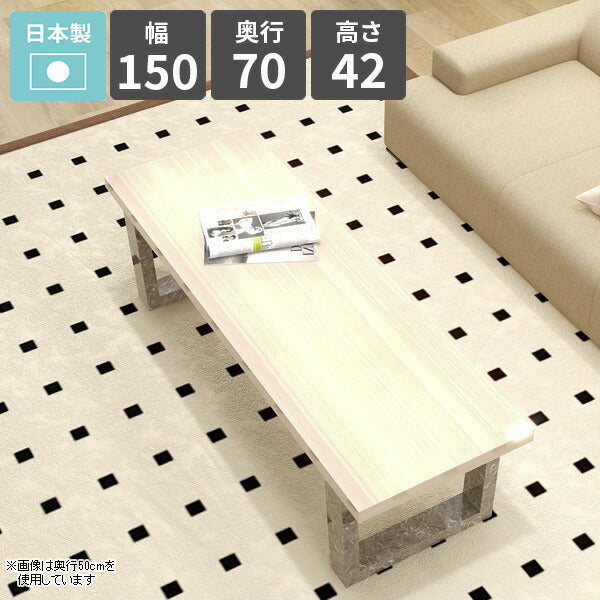 [使用商品/カラー] 上:幅150×奥行90×高さ42cm 木目ホワイトウッド×ナチュラル、下:幅120×奥行50×高さ42cm ニレ