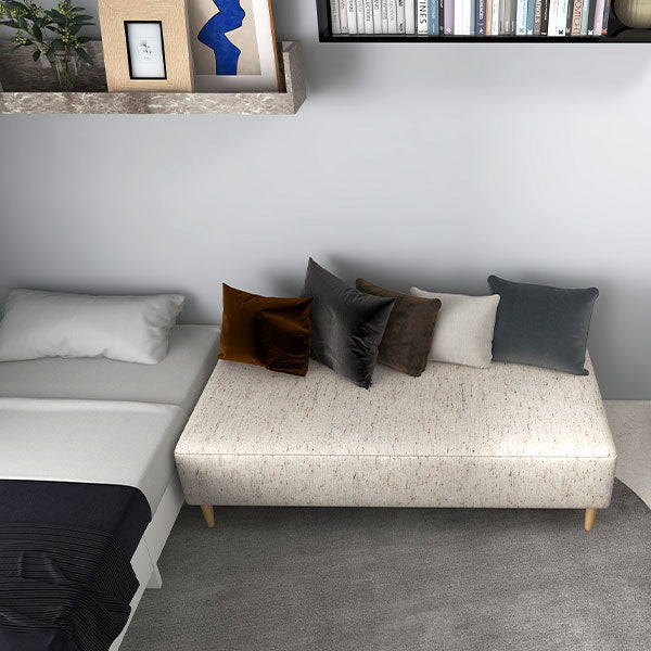 1DKや2DKなどの少し広めの間取りに、快適なヌックスペースを設置するのがおすすめです。リビングの一角や窓際の未利用スペースを活用して、読書やくつろぎの時間を楽しむ専用の場所として演出しましょう。壁面に設置してゆったりと座れるソファ仕様にし、別売りのクッションを並べて更にくつろげる空間に。ヌックスペースは、日常から程よく距離を置き、プライベートな時間を充実させるための理想的な選択です。