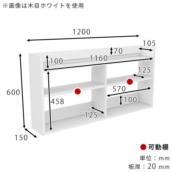 [使用商品] 上:幅120×奥行25×高さ80cm WhiteWood、下:幅120/60×奥行25×高さ40cm 突板ウォールナット