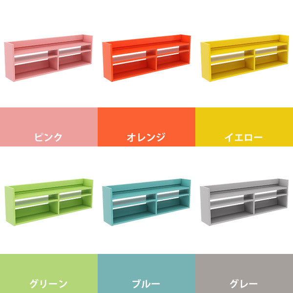 使用商品 上:幅120奥行25×高さ80cm ainoピンク×オレンジ、下:幅120×奥行25×高さ60cm 突板タモグレー