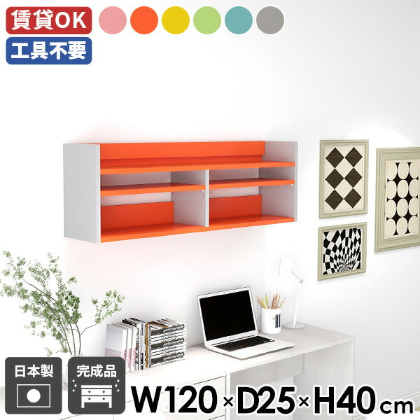 使用商品 上:幅120奥行25×高さ80cm ainoピンク×オレンジ、下:幅120×奥行25×高さ60cm 突板タモグレー