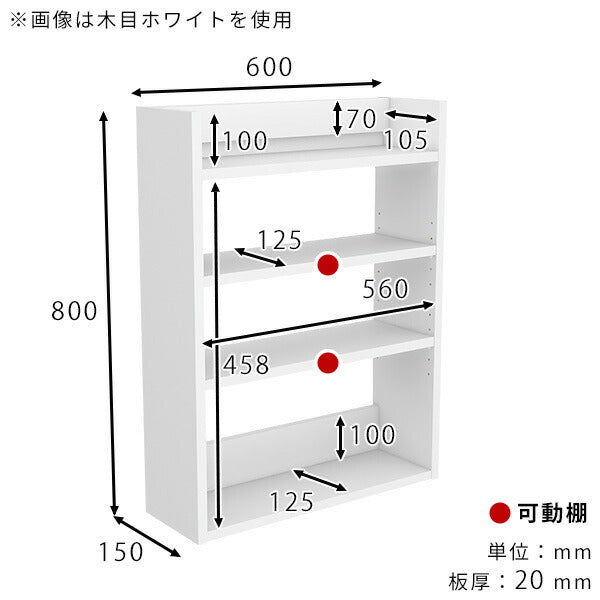 可動棚:2枚(3cm間隔で7段階調節可能)