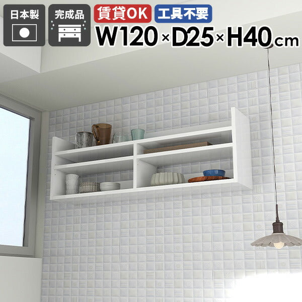 使用商品 上:幅120×奥行25×高さ80cm WhiteWood、下:幅120/60×奥行25×高さ40cm 突板ウォールナット