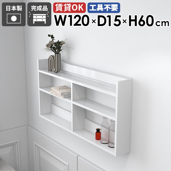 使用商品 上:幅120×奥行25×高さ80cm WhiteWood、下:幅120/60×奥行25×高さ40cm 突板ウォールナット