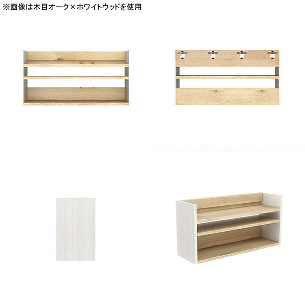使用商品 上:幅120×奥行25×高さ80cm WhiteWood、下:幅120/60×奥行25×高さ40cm 突板ウォールナット
