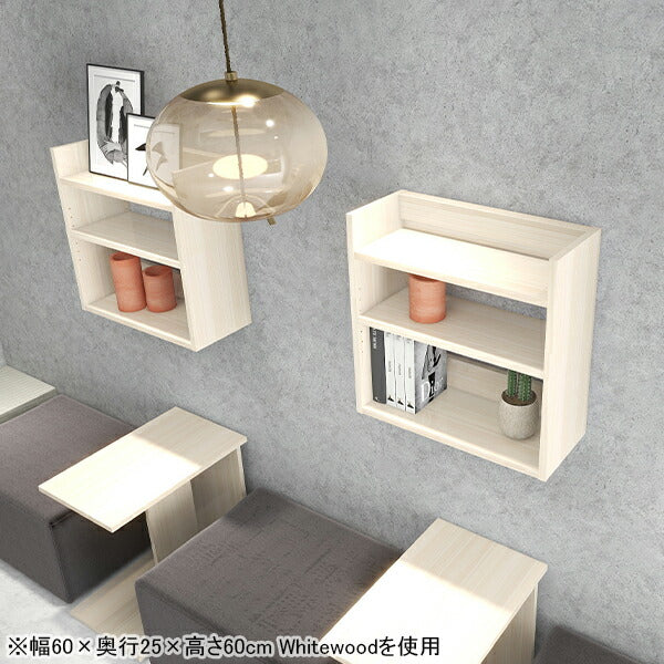 使用商品 左:幅80×奥行20×高さ60cm 木目ホワイトウッド×ブラウン、右:幅80×奥行20×高さ80cm GrayStone