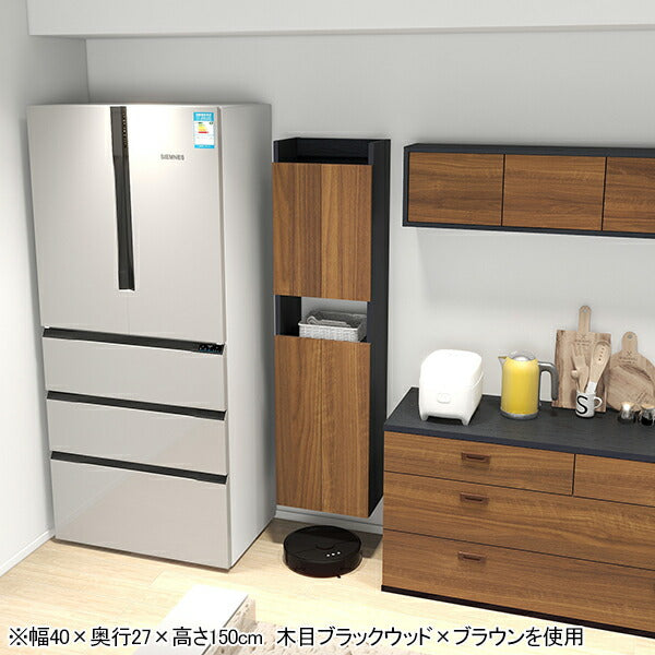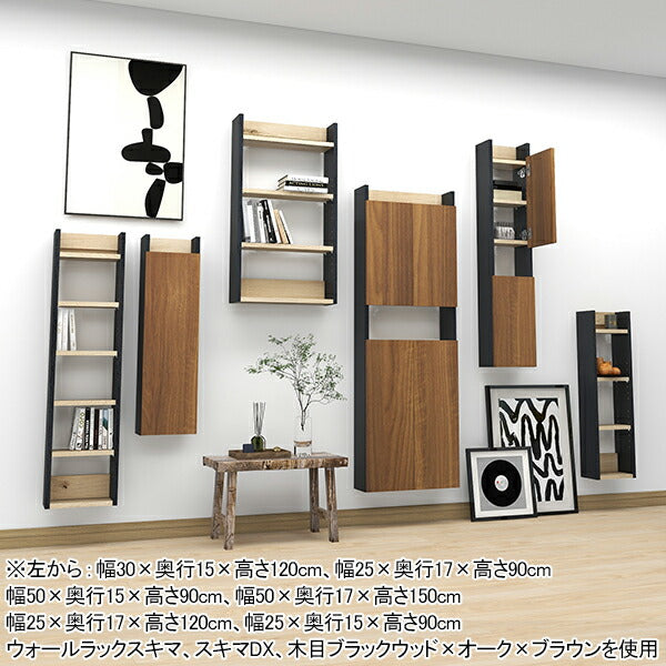 幅25×奥行15×高さ90cm 木目ブラックウッド×オーク、(扉有)ブラックウッド×オーク×ブラウンを使用